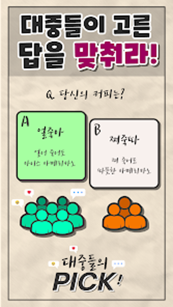 대중들의 PICK är ett gratis trivia-spel för Android som utmanar spelare att gissa de mest populära svaren bland allmänheten. Spelet fokuserar på aktuella trender och erbjuder en unik balans mellan underhållning och kunskap. Genom att svara på olika frågor kan spelarna upptäcka hur väl de känner till vad som är populärt för tillfället. Med en dynamisk frågebank som uppdateras dagligen, hålls spelarna engagerade och på tårna.